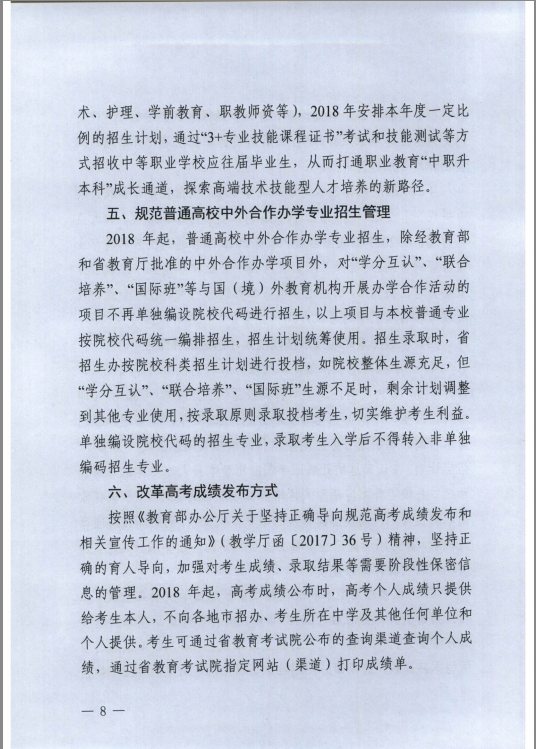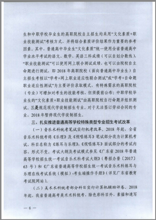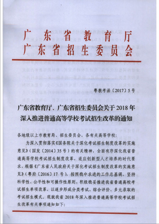 广东省教育厅、广东省招生委员会关于2018年深入推进普通高等学校考试招生改革的通知